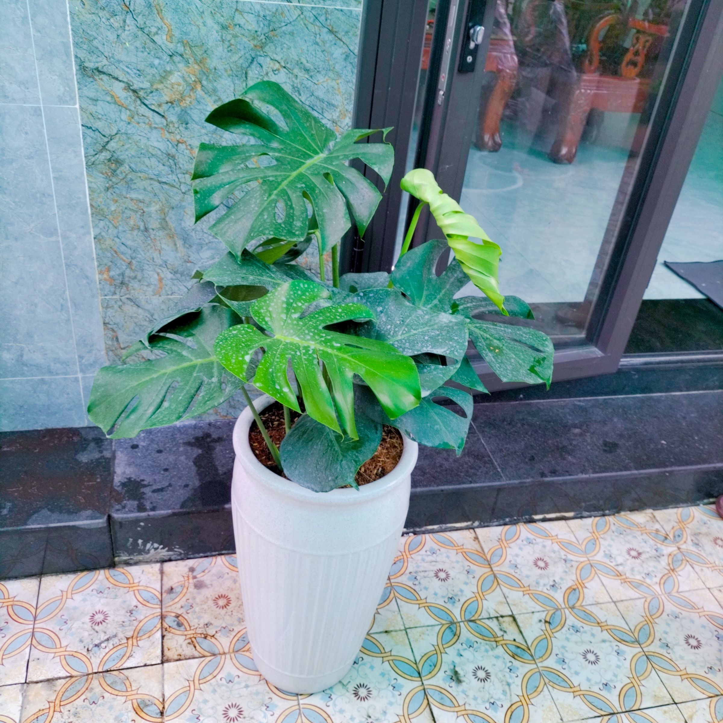 Trầu bà lá sẻ đẹp dễ chăm tán lá to và khoẻ. Lá có màu xanh nhẹ.